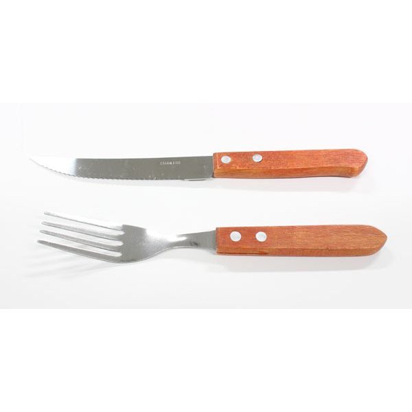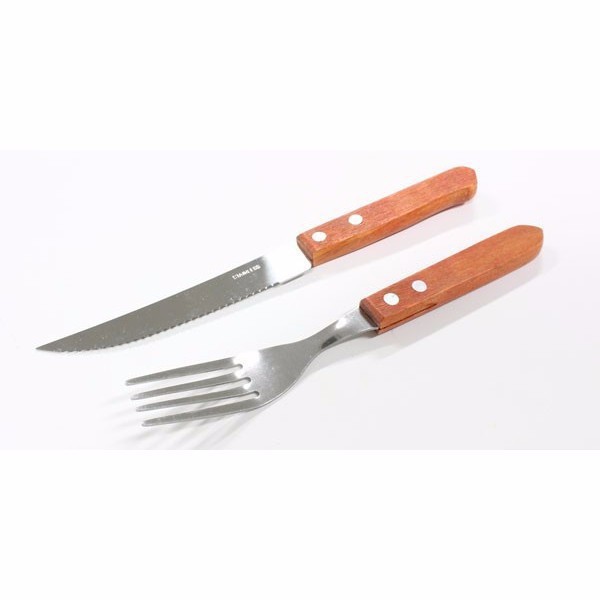 - Chất liệu: lưỡi dao và nĩa được làm bằng inox không gỉ, cán được làm bằng gỗ.