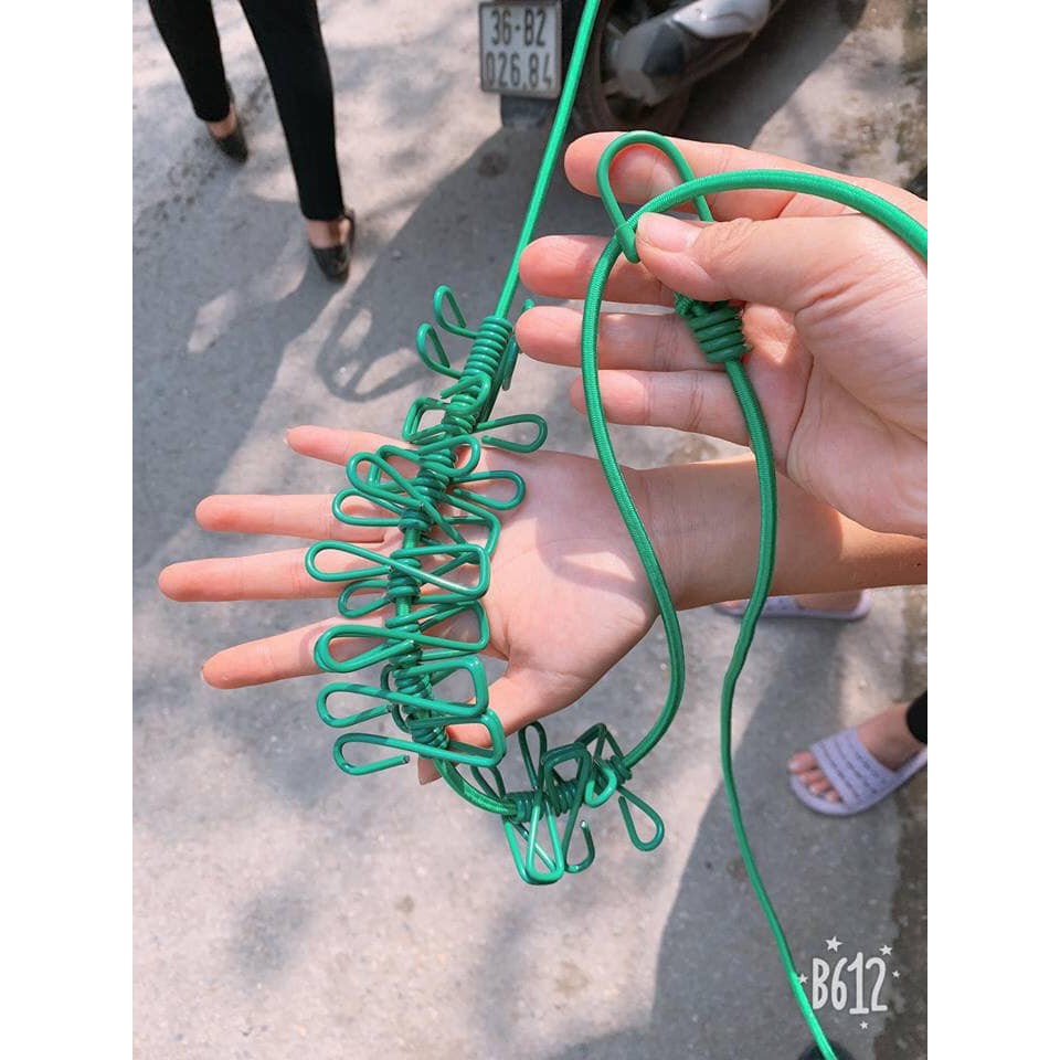 Dây phơi đồ có kẹp thiết kế thông minh giúp phơi quần áo thuận tiện, giữ quần áo không bị rơi xuống đất hay bị gió thổi bay đi.Có em này rồi thì khỏi lo rơi đồ rồi ạ.Giá quá hạt rẻ luông ạ