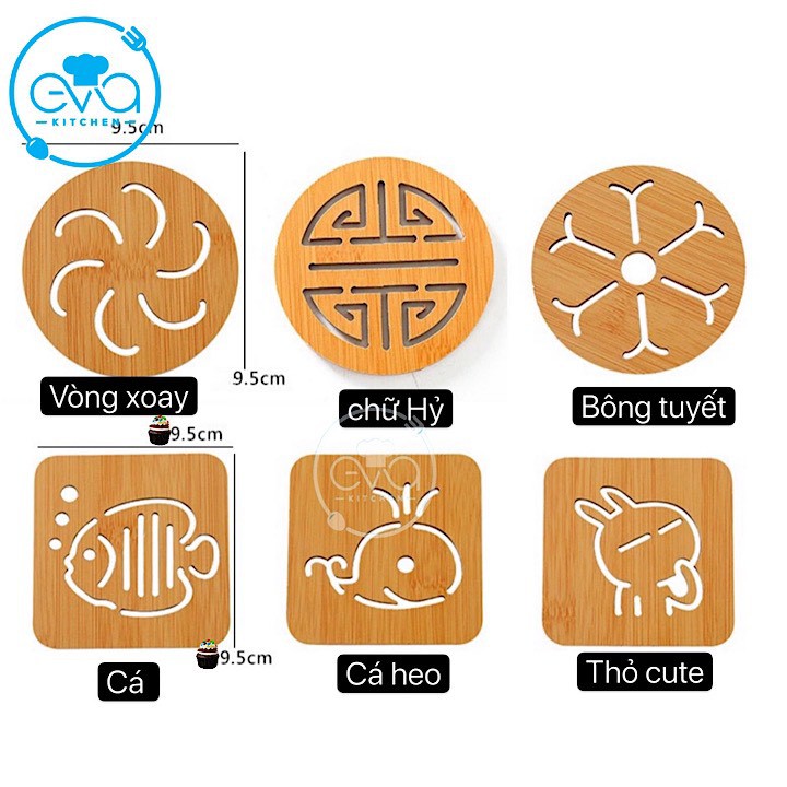 - Đế lót cốc, ly được làm bằng gỗ giúp cách nhiệt giữa nồi và mặt bàn hay tủ đựng thức ăn hiệu quả.