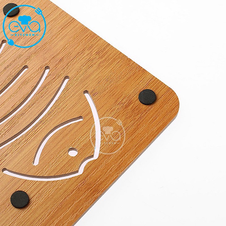 - Miếng lót cốc được làm bằng gỗ với thiết kế độc đáo, giúp cố định nồi đứng vững hơn, tránh trường hợp rơi vỡ do trơn trượt, đồng thời mang đến vẻ trang nhã cùng phong cách hiện đại cho không gian bếp nhà bạn.