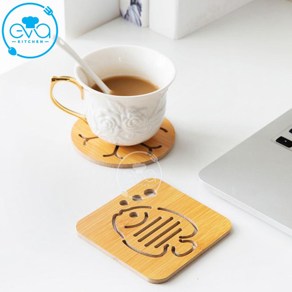 Nhà cửa & Đời sống > Bộ đồ bàn ăn > Khay, tấm lót bàn ăn || Set 2 Đế Lót Ly Cốc Bằng Gỗ Cách Nhiệt Chống Trơn Trượt Hoạ Tiết Sang TrọngCòn hàng