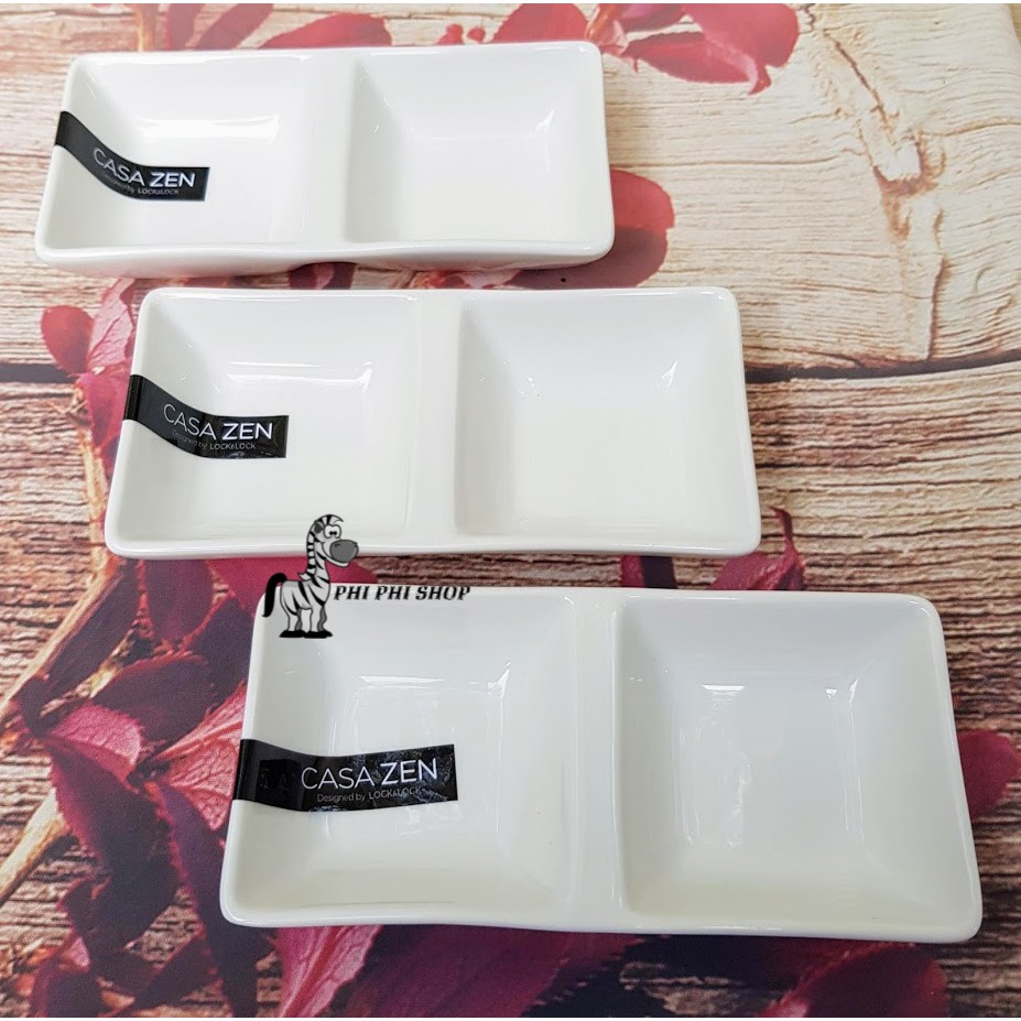 Nhà cửa & Đời sống > Bộ đồ bàn ăn > Dĩa || Set 2 đĩa gia vị , chén chấm sứ 2 ngăn Lock&Lock Casa Zen SLT602Còn hàng