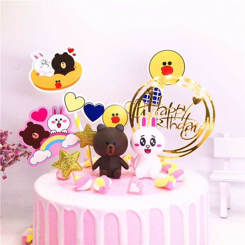 Set gấu thỏ trang trí bánh, phụ kiện trang trí bánh kemSet gấu Brown, cony