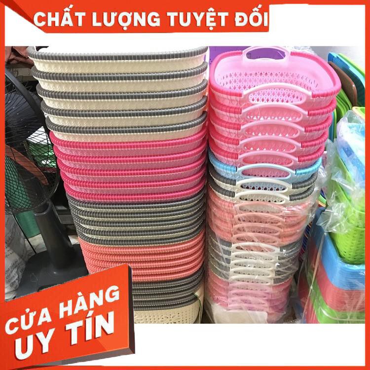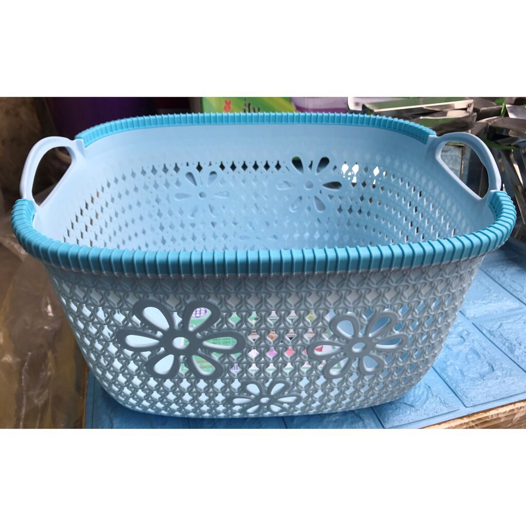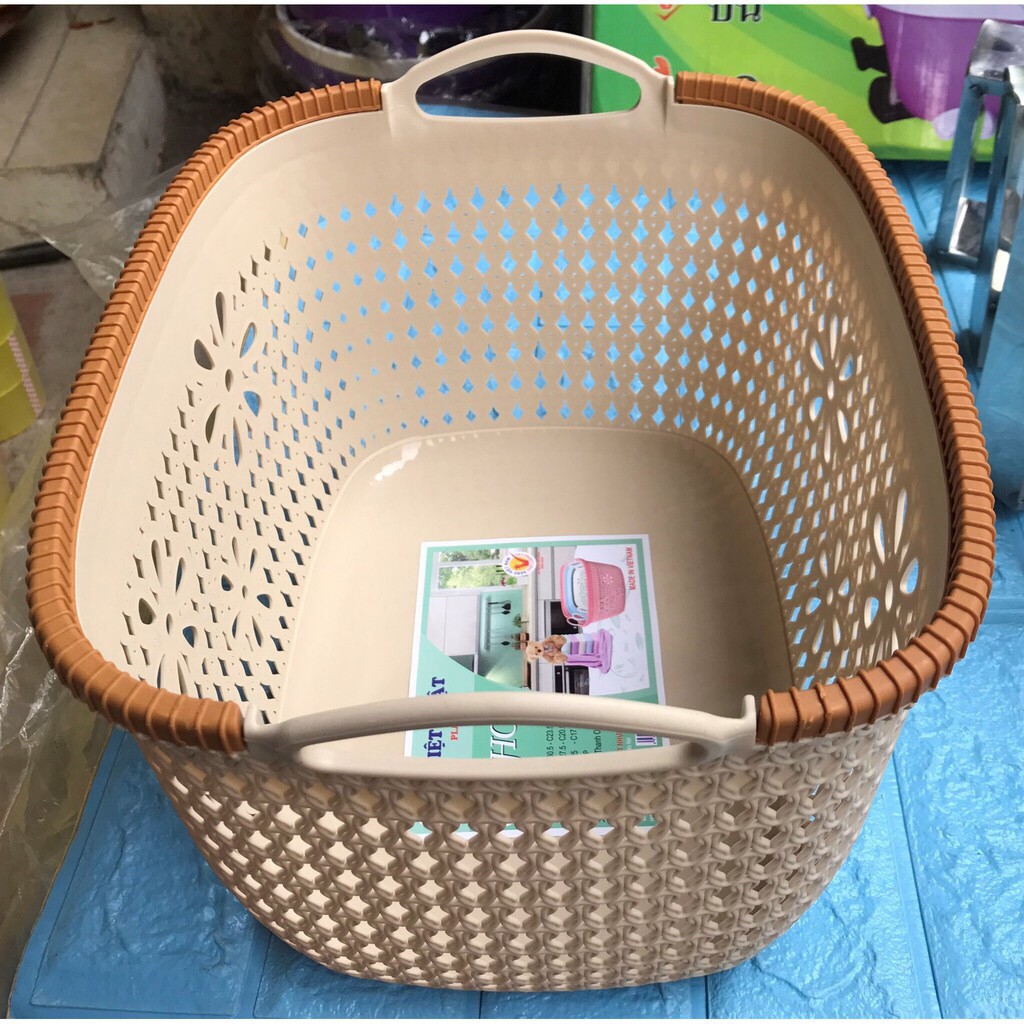 Combo 2 giỏ nhựa hoa giả mây có quai xách size đại / Rổ nhựa Việt Nhật có quai xách size lớnChi tiết sản phẩm:\