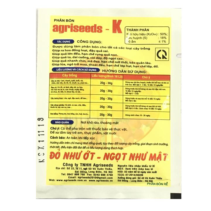 Set 2 gói phân bón lá siêu kali Agriseeds - K siêu ra hoa, siêu đậu quả gói 25gQui cách sản phẩm: