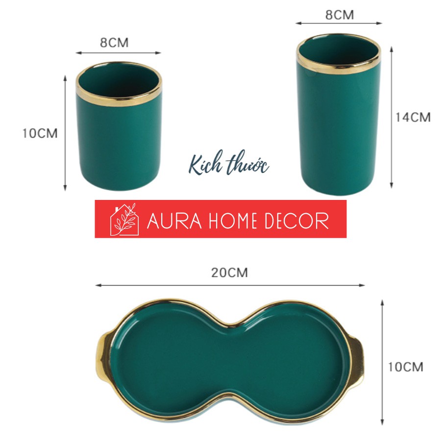 Nhà cửa & Đời sống > Nội thất > Kệ & Giá || Set 2 hũ đựng đũa kèm đĩa hứng nước cực sang chảnh với màu xanh cổ vịt/ hồng viền vàngCòn hàng