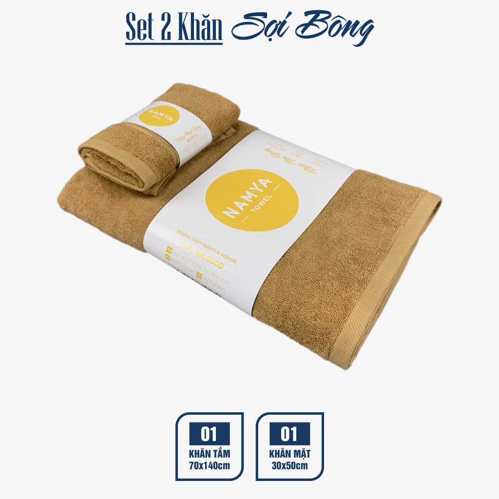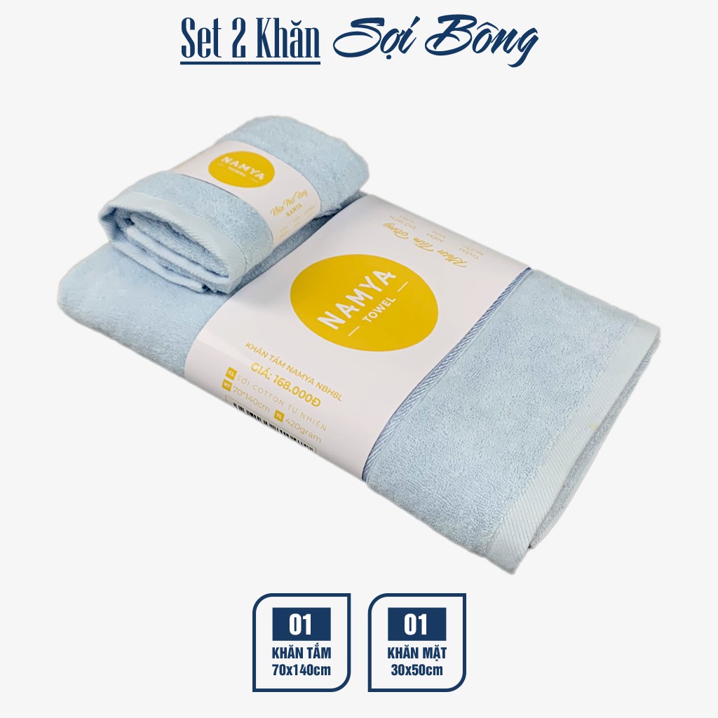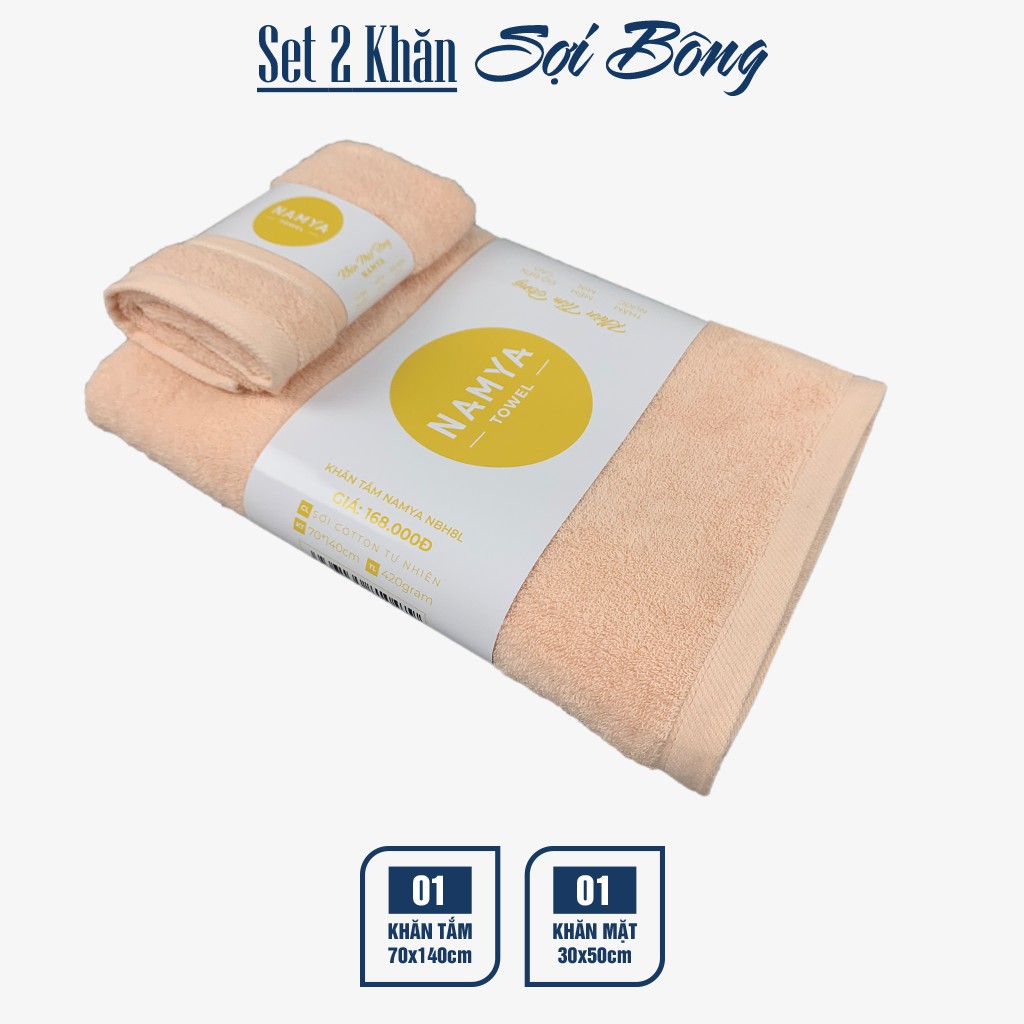 Set 2 khăn bông: 1 khăn tắm và 1 khăn mặt cotton S2NH8-L