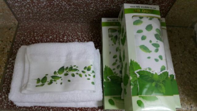 Giới thiệu Set 2 khăn Clear hoạ tiết lá bạc hà