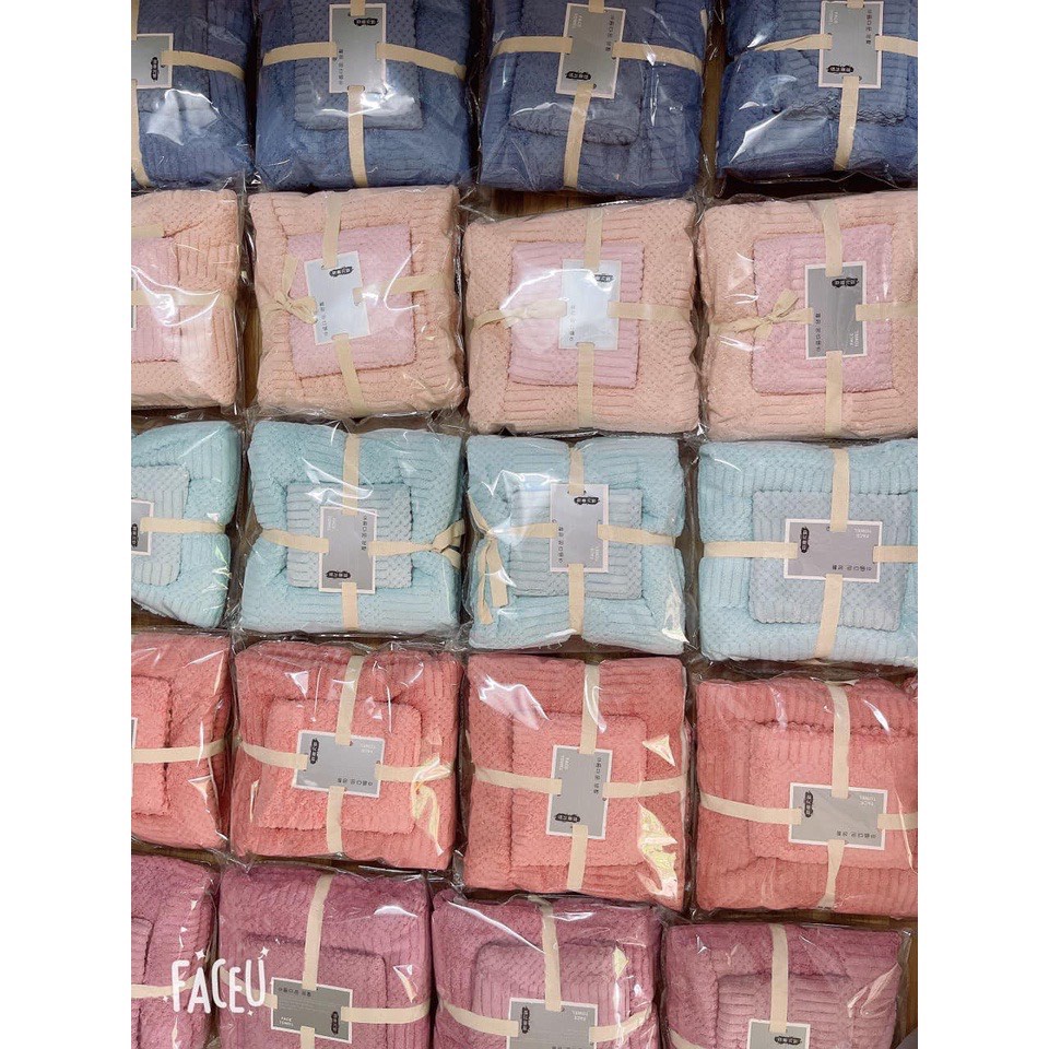 Đóng gói: Set 2 khăn tắm và khăn mặt đồng màu