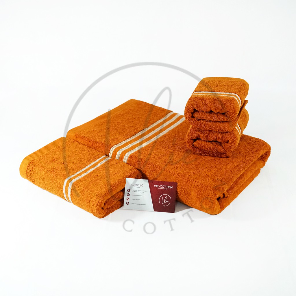 Set 2 khăn tắm là một trong những bộ sản phẩm khăn bông cao cấp của nhãn hiệu Khăn VieCotton , một nhãn hiệu khăn bông cao cấp tại thị trường Việt Nam của làng dệt Hà Tây Quê Lụa Hà Đông Hà Nội – Một trong những làng dệt may nổi tiếng lâu đời ở Việt Nam , là đơn vị tiên phong sản xuất khăn bông và uy tín về thương hiệu