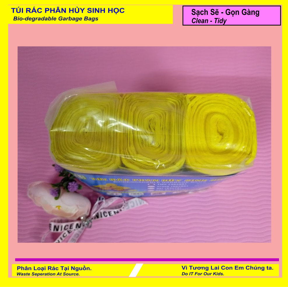 Set 2 Kí Bao Rác Sinh Học - Tự Hủy Sinh Học - Dạng Cuộn - 3 Size - MÀU VÀNG / Set 2 Kilograms Of Bio-degradable Trash Bags - Garbage Bags - In Rolls - 3 Sizes - COLOR YELLOW