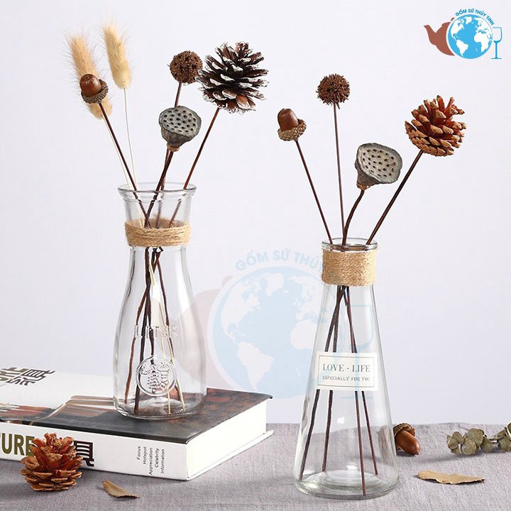 Nhà cửa & Đời sống > Trang trí nhà cửa > Khác || SET 2 lọ hoa thủy tinh EO NHỎ VÀ TAM GIÁC TRÒN - MIX 2 MẪU SIÊU XINH tặng kèm 2 dây dừa trang tríCòn hàng