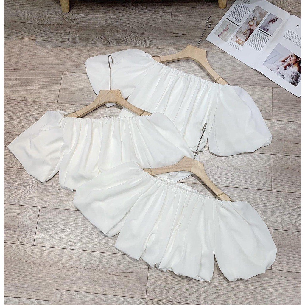 Áo trắng trễ vai chun bo cao cấpdáng ngắn siu xinh lun í