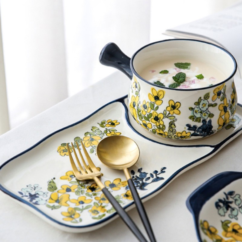 Nhà cửa & Đời sống > Bộ đồ bàn ăn > Dĩa || Set 2 món bát đĩa ăn sáng cao cấp họa tiết Mai VàngCòn hàng