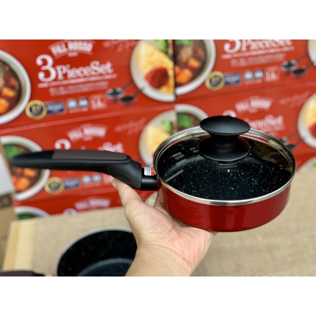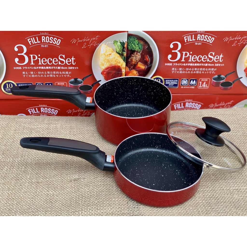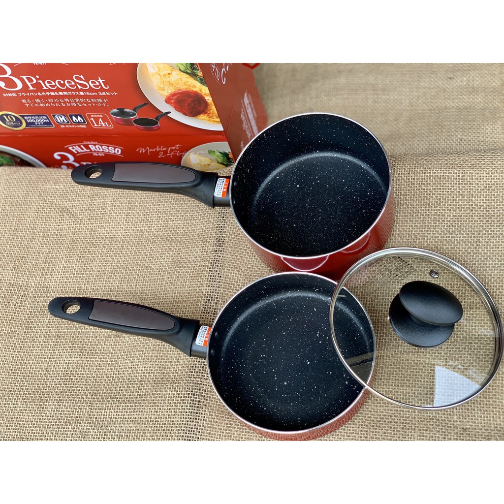 Set 2 nồi chảo 16cm kèm nắp đậy dùng được bếp từ (màu đỏ) - Nhật bản