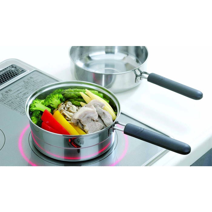 Set 2 nồi chảo 18cm kèm nắp đậy có giá hấp Kakuse nội địa Nhật Bản