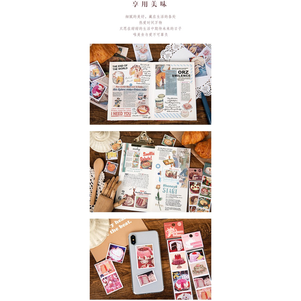 Giới thiệu Set 2 tấm hình dán dài đồ ăn các loại bánh ngọt