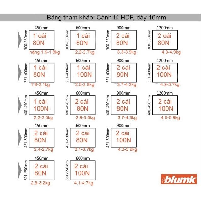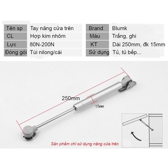 Lực đẩy :150N (~15-30kg theo góc mở 2 mặt gắn)