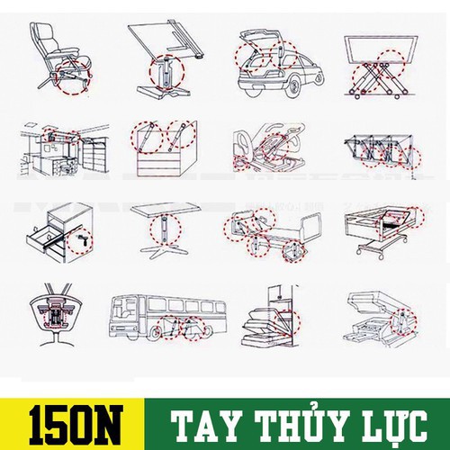 Tay thủy lực 150N phụ kiện tủ /cửa giảm tiếng ồn, chống va đập, tăng độ bền tủ / cửa / cốp xeThông số kỹ thuật