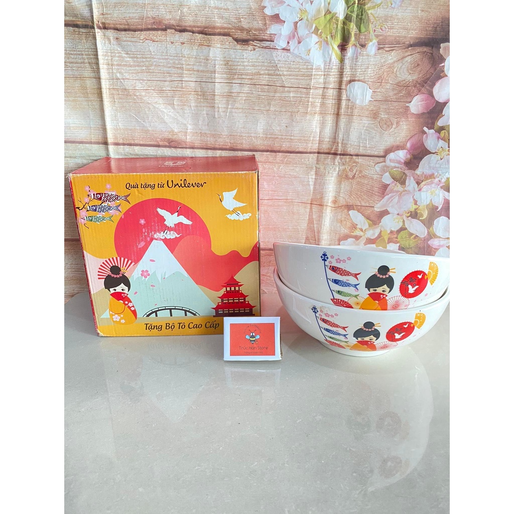 Tô sứ hoa văn 8inch quà UnileverKích thước: 20 x 8 cm