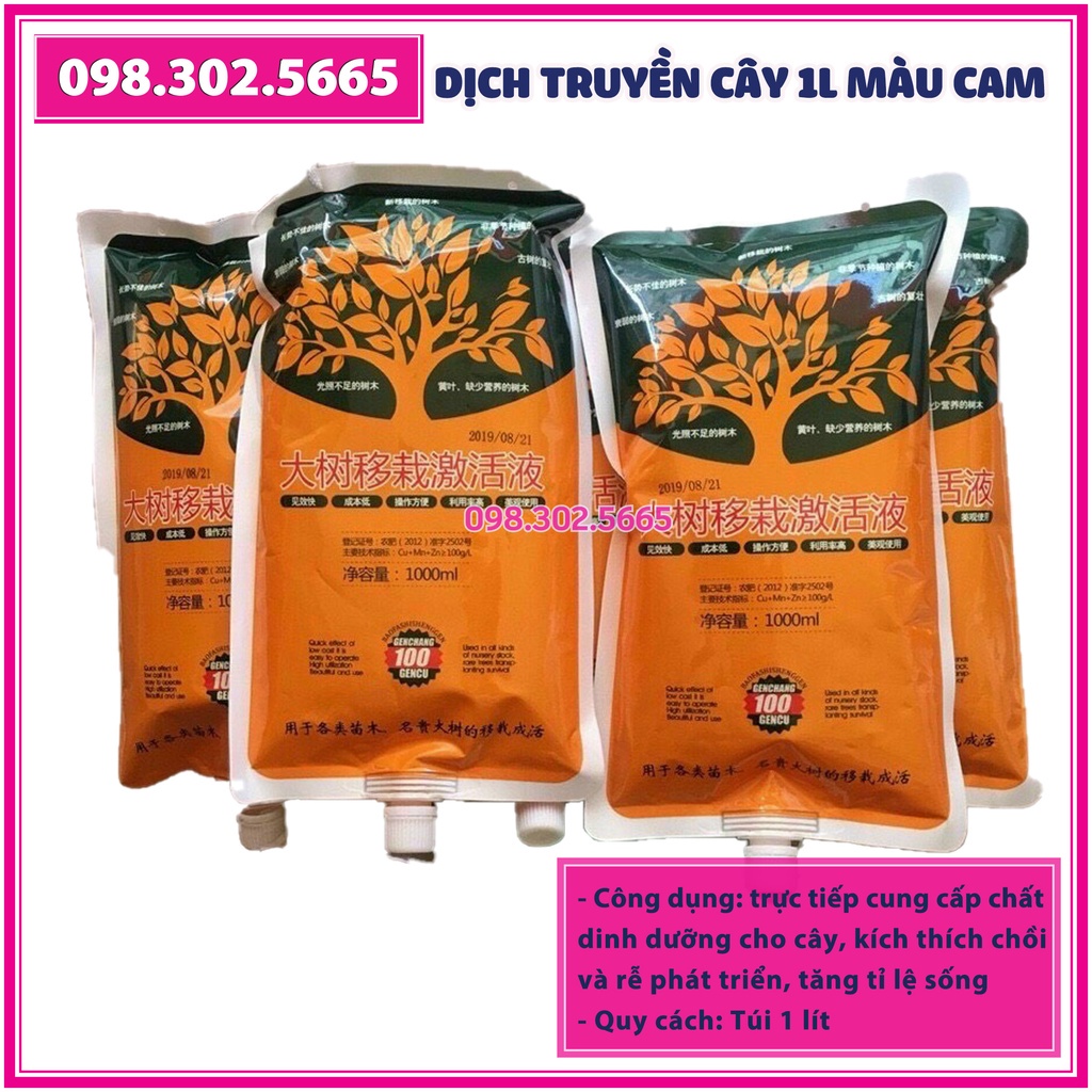 SET 2 túi Dịch truyền đầy đủ dinh dưỡng cho cây còi cọc, thiếu dinh dưỡng (túi 1 lít màu cam)