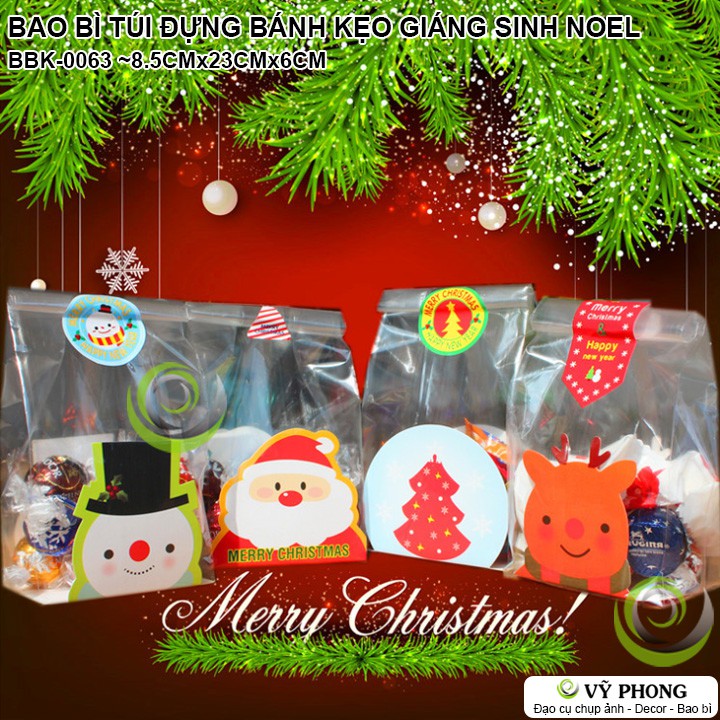 Tên sản phẩm : BAO BÌ TÚI NHỰA ĐỰNG BÁNH KẸO QUÀ DỊP GIÁNG SINH NOEL PHONG CÁCH ĐƠN GIẢN ĐẾ IN HÌNH ÔNG GIÀ NOEN TUẦN LỘC BBK-0063Mã sản phẩm : BBK-0063