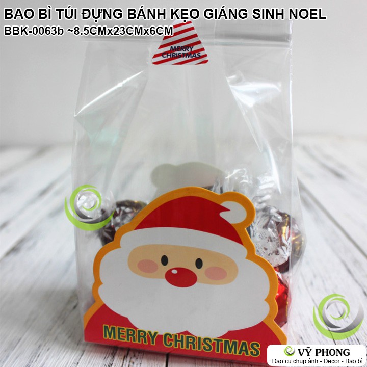 SET 20 BAO BÌ TÚI NHỰA ĐỰNG BÁNH KẸO GIÁNG SINH NOEL PHONG CÁCH ĐƠN GIẢN ĐẾ IN HÌNH ÔNG GIÀ NOEN TUẦN LỘC BBK-0063