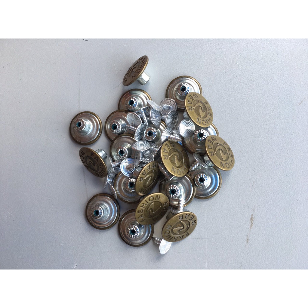 Giới thiệu Set 20 nút quần jean vàng đồng có chữ