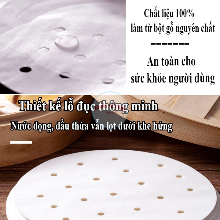 – Giấy nến tròn đục lỗ lót nồi hấp dùng để nướng bánh, hấp bánh bao, ngăn chặn sự bốc hơi quá nhiều của nước làm ướt bánh.