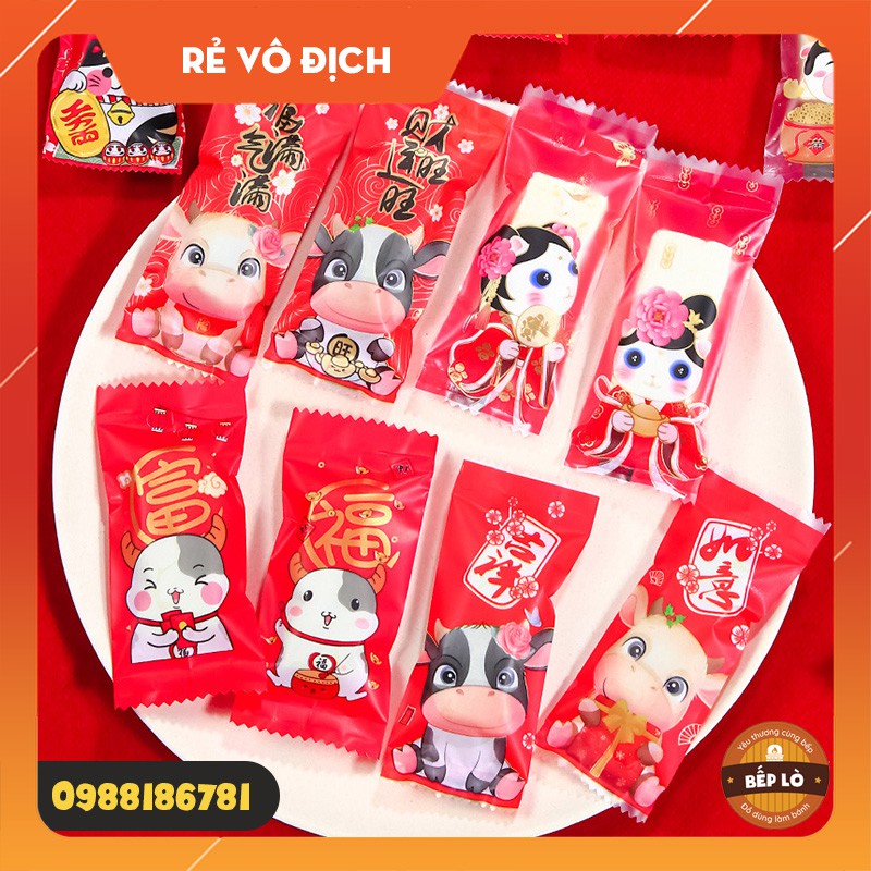 Set 200 túi Kẹo Nougat, Túi Kẹo Hạnh Phúc Chúc Mừng Năm Mới 2021 HÀNG MỚI VỀ