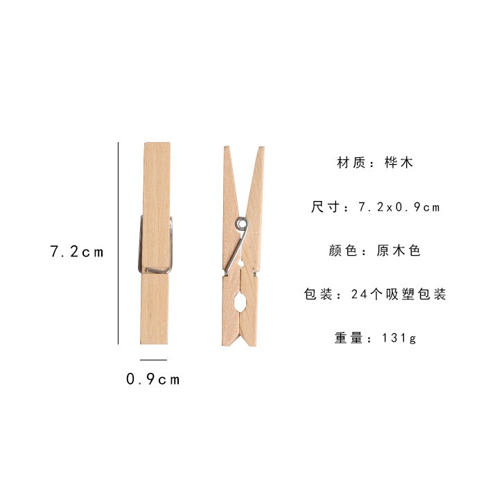 Sản phẩm gồm 24 kẹp gỗKích thước: 7,2x0,9cm