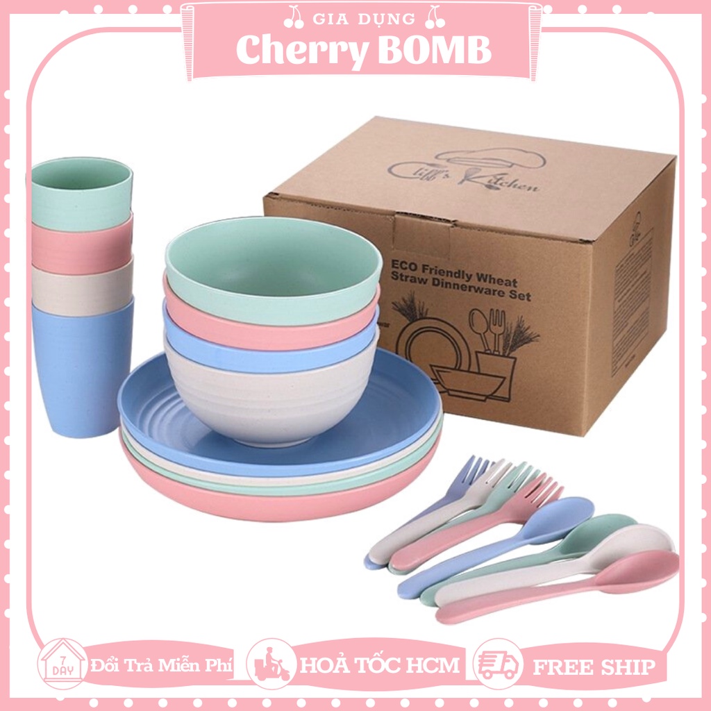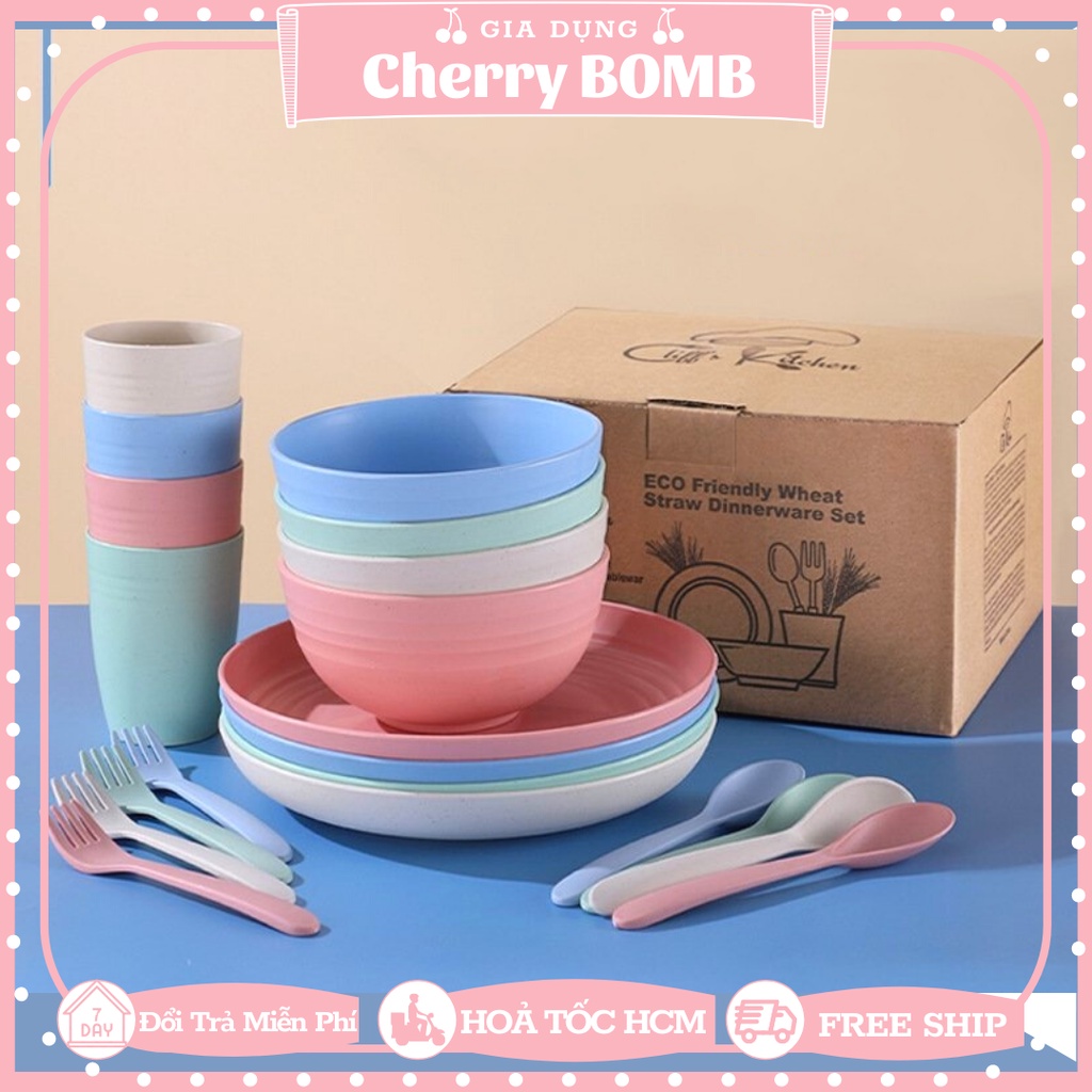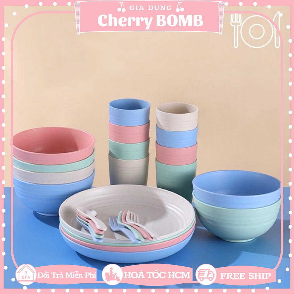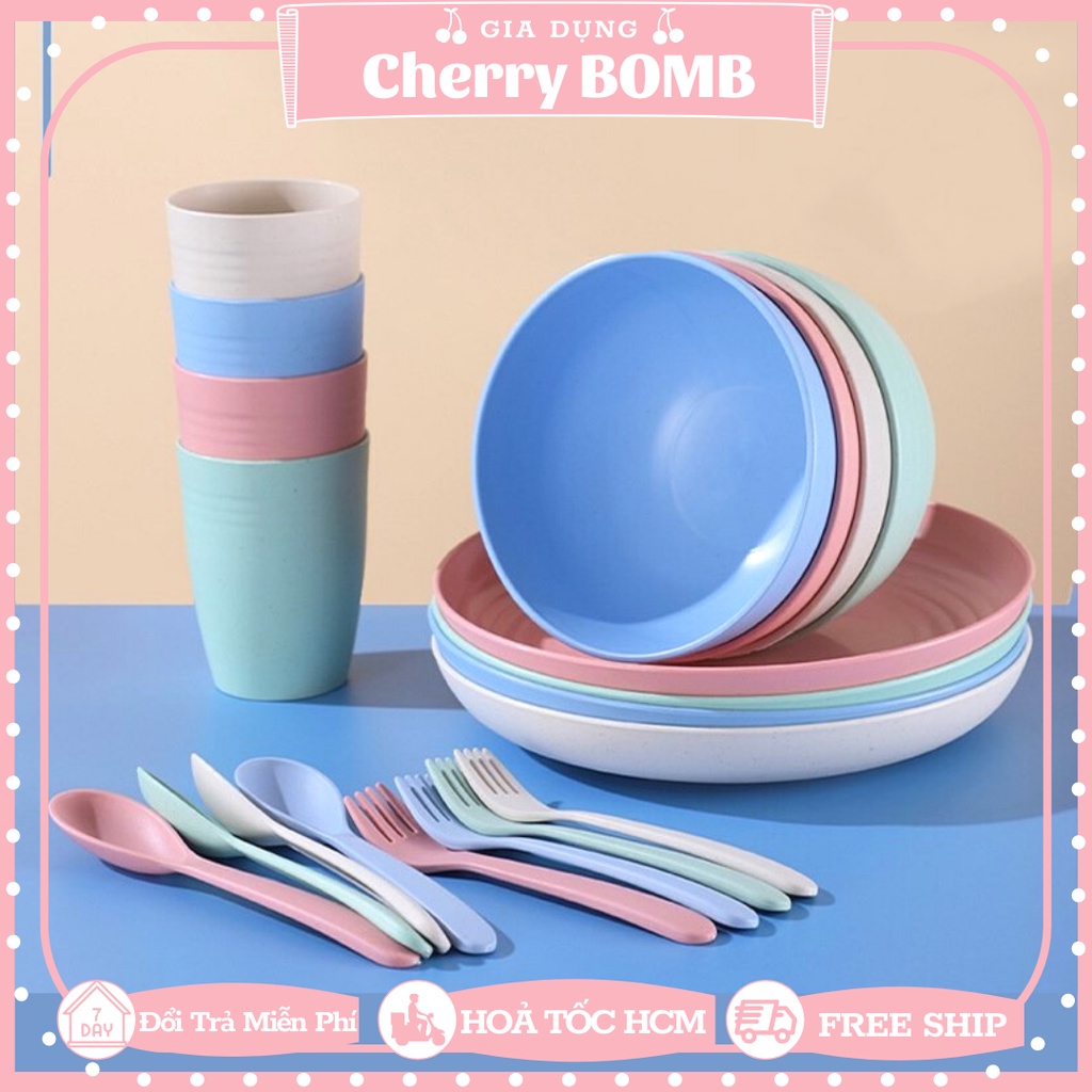 HÀNG HIẾMĐẶC ĐIỂM NỔI BẬT Của Set 25 Chi Tiết Chén Dĩa Ly Muỗng Nĩa 4 Màu Chất Liệu Nhựa Lúa Mạch Làm Quà Tặng Cho Gia Đình