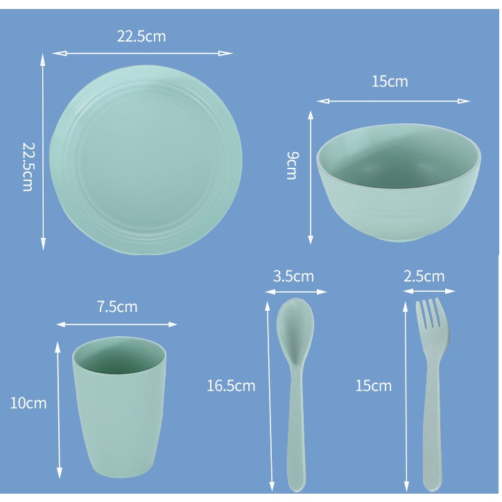Giới thiệu Set 25 Chi Tiết Chén Dĩa Ly Muỗng Nĩa 4 Màu Chất Liệu Nhựa Lúa Mạch Làm Quà Tặng Cho Gia Đình