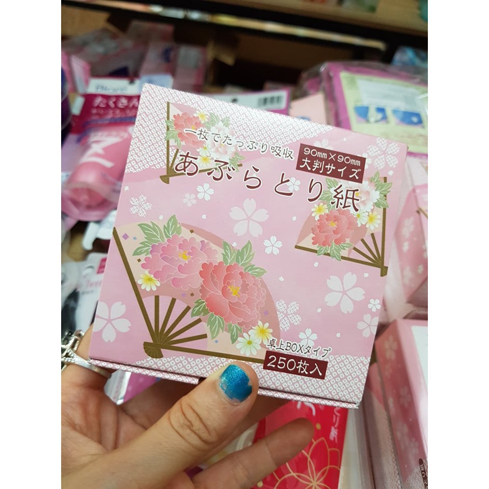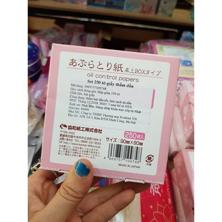 Giới thiệu Set 250 tờ giấy thấm dầu da mặt kích thước 90*90mm cực kì nhỏ gọn tiện lợi và an toàn giúp loại bỏ dầu nhờn bất kể lúc nào cho chị em phụ nữ.