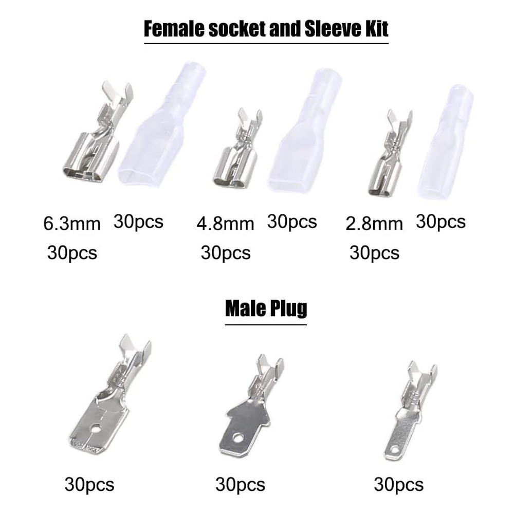90 cái x Đầu nối cái (6.3 + 4.8 + 2.8mm, mỗi cái 30 cái)