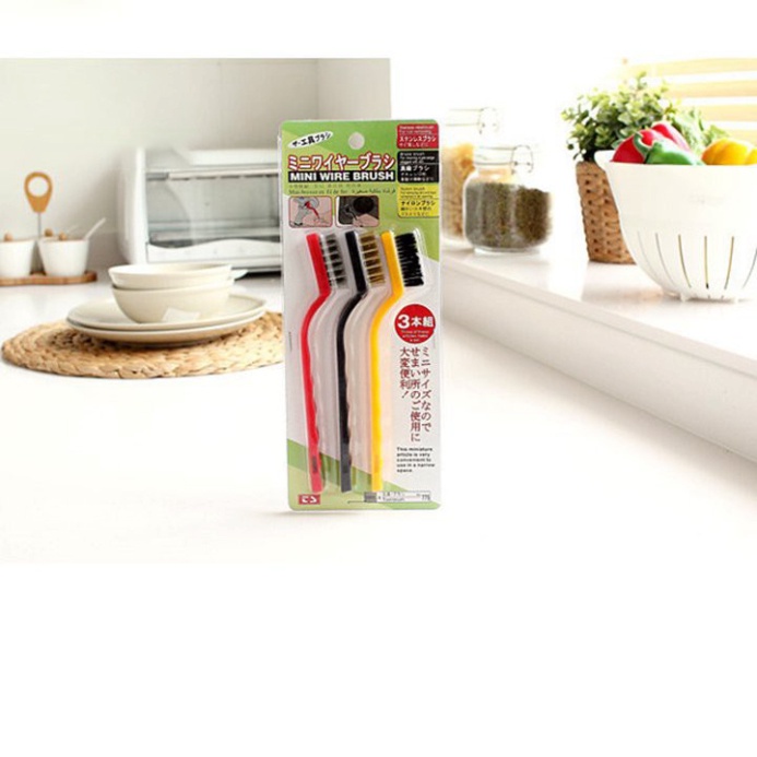 Set 3 bàn chải 3 chất liệu cọ khe nhỏ , bếp ga , nhà bếp