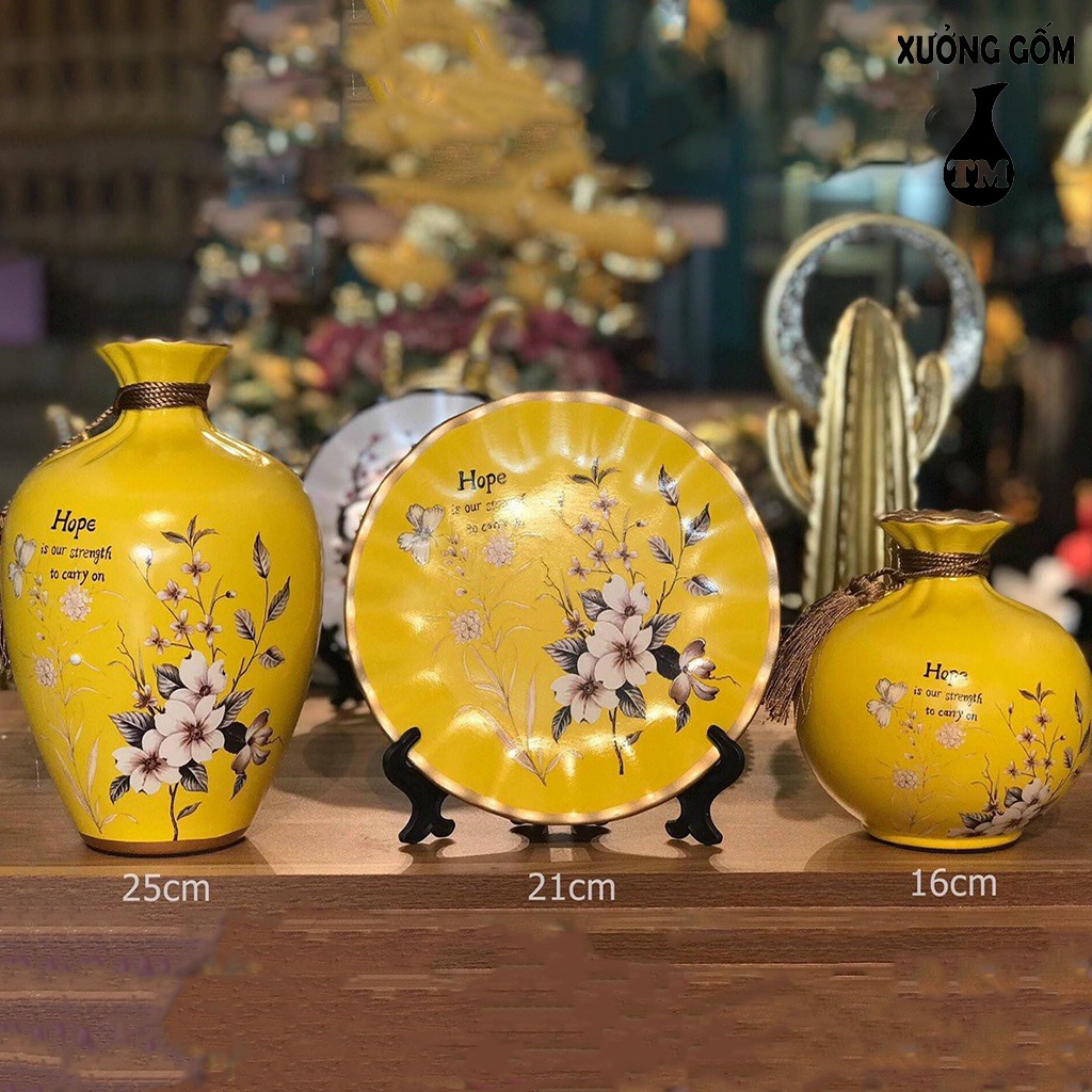 Set 3 Bình Hoa Xưởng Gốm TM Bát Tràng Họa Tiết Gốm Sứ Decor Cao Cấp (Giao mẫu ngẫu nhiên)