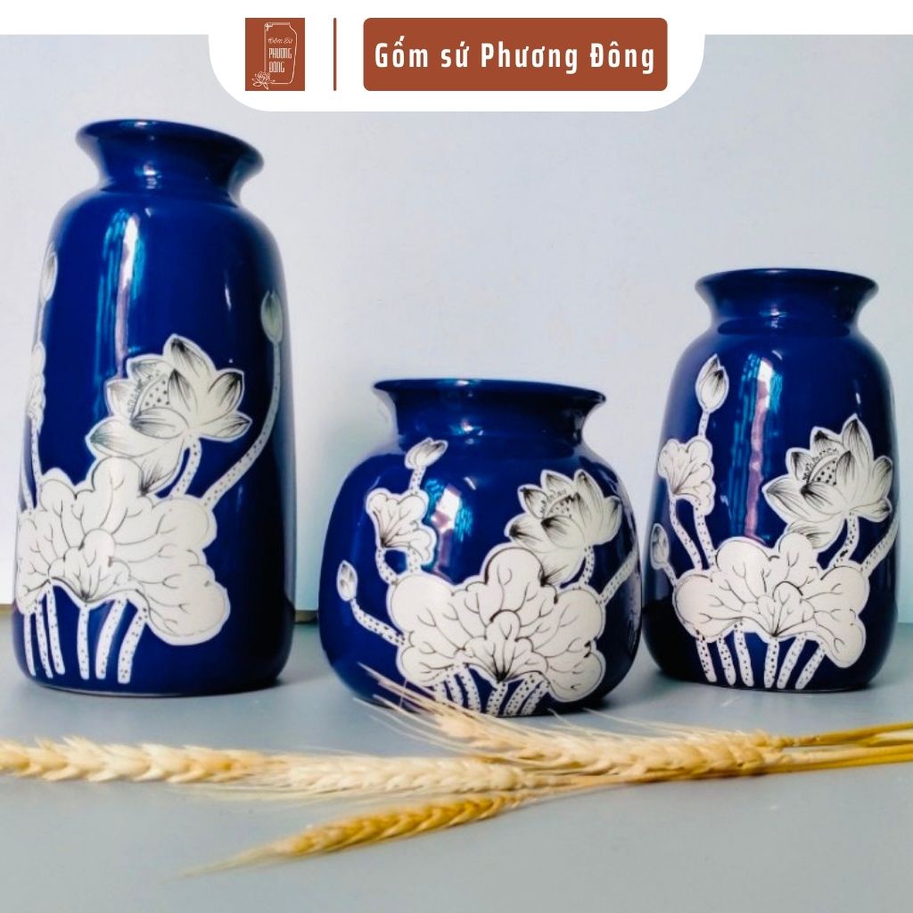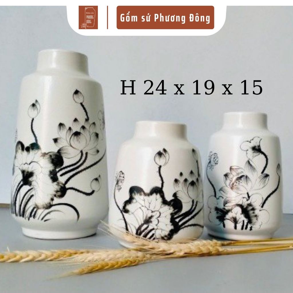 Bộ 3 bình hoa vẽ hoa văn đa dạng, độc đáo, nhiều mẫu mã, được sản xuất bởi các nghệ nhân Bát Tràng, giúp căn phòng thêm đẹp và ấm cúng.