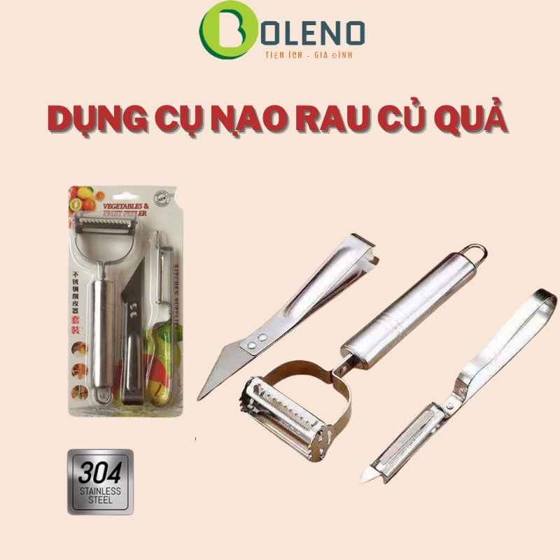 Sét Bộ 3 Dao Nạo Gọt Tỉa Hoa Quả Đa NăngChất liệu thép thiết kế vừa tay cầm và lưỡi dao mảnh sắc, dụng cụ bào cắt rau củ sẽ giúp bạn dễ dàng lột vỏ nhiều loại trái cây và củ quả một cách nhanh chóng với độ thẩm mỹ cao, tiết kiệm thời gian tối đa. Lưỡi dao bằng thép không rỉ cao cấp, sắc. Có độ bền cao vì vậy bạn có thể lột vở các loại củ, quả một cách nhanh chóng, đẹp mắt. Tay cầm vừa vặn, đảm bảo an toàn cho người sử dụng