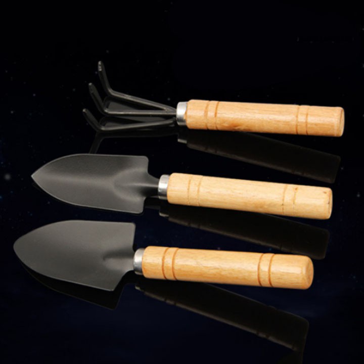 Set 3 dụng cụ làm vườn mini có tay cầm gỗ tiện dụng