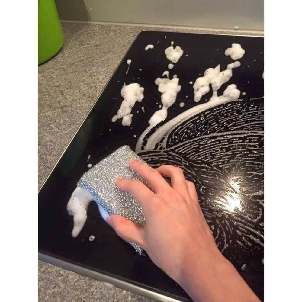 - Cũng có thể dùng để vệ sinh mặt bếp từ, cọ bồn rửa mặt, dùng vệ sinh đa năng chứ không đơn thuần là rửa bát.