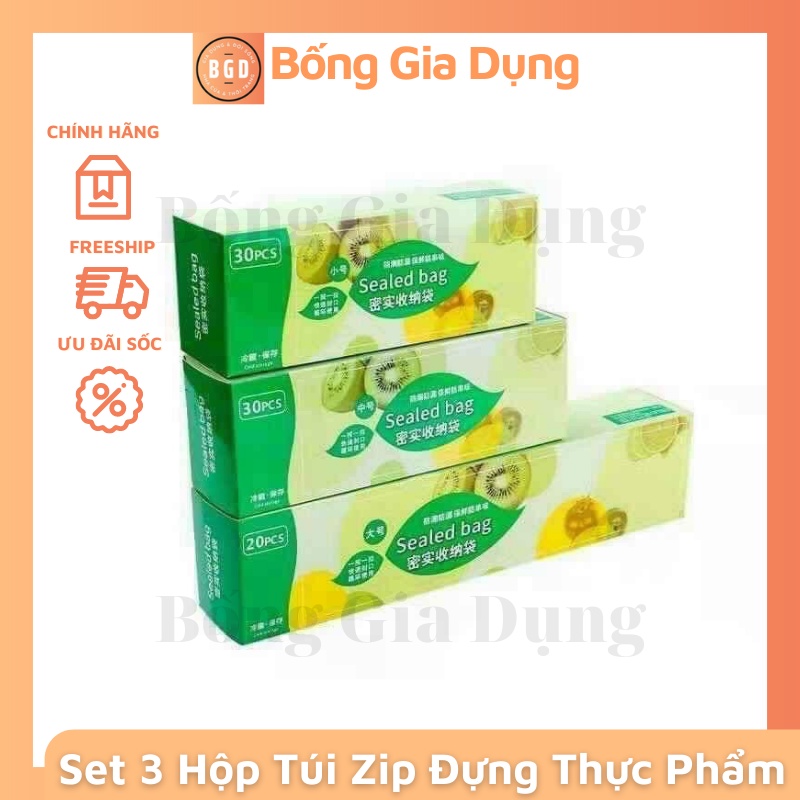 Set 3 Hộp Túi Zip Đựng Thực Phẩm Có Khoá, Combo 80 Túi