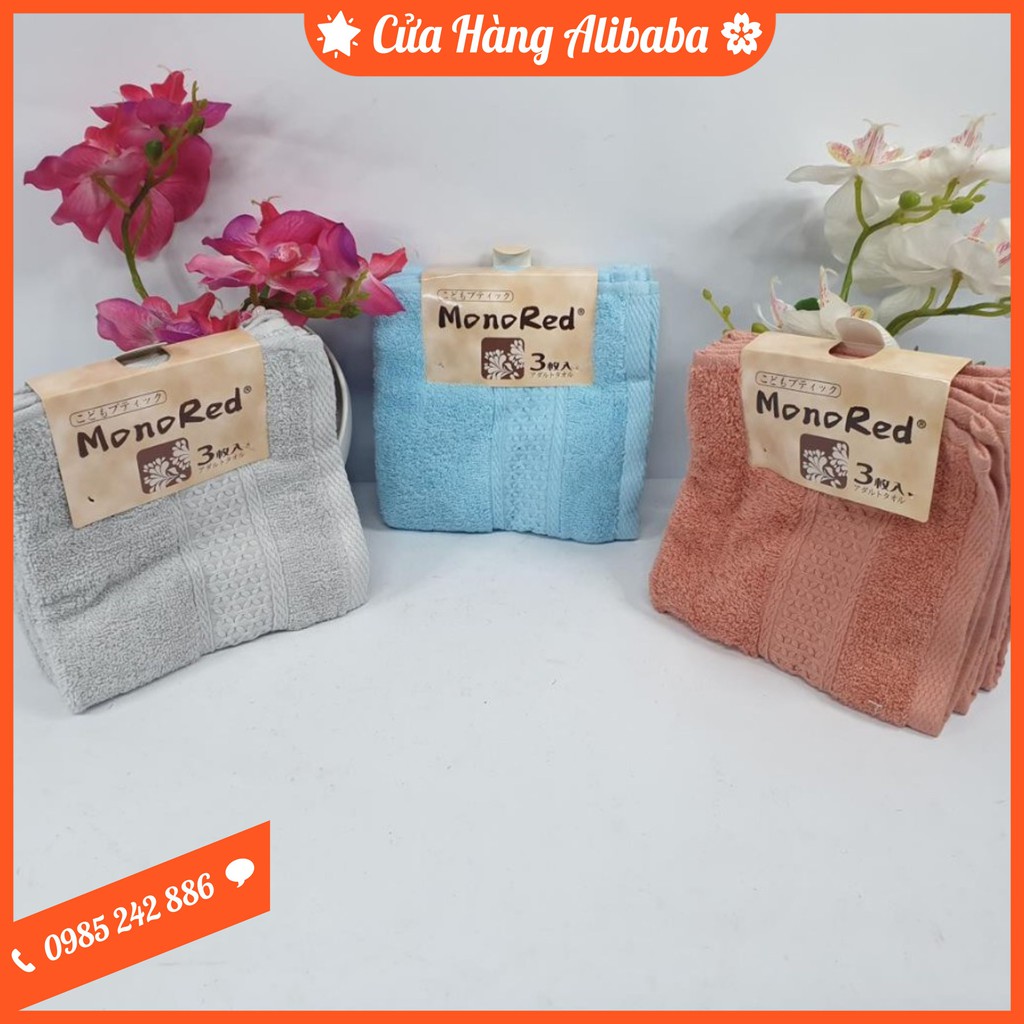 SET 3 Khăn Mặt Nhật MonoRed 34*34cm Cao Cấp Siêu Mềm Mịn