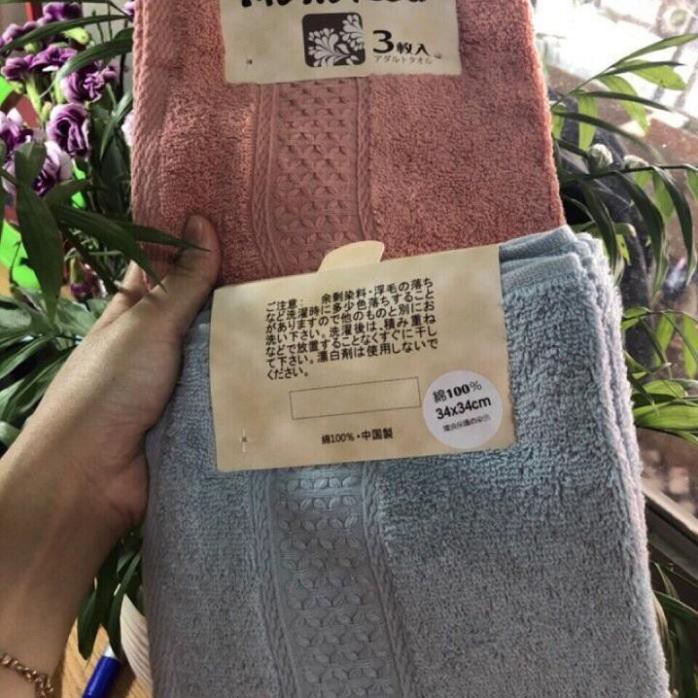 Set 3 Khăn Mặt Xuất Nhật Mono Red Kích thước 34x34cm - Giao màu ngẫu nhiên (#thai)