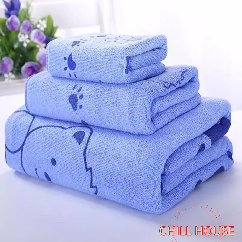 Nhà cửa & Đời sống > Đồ dùng phòng tắm > Khăn mặt, khăn tắm, áo choàng tắm > Khăn tắm || Set 3 khăn nhà tắm tiện ích (gồm khăn tắm, khăn lau tóc, khăn mặt) - CHILLHOUSECòn hàng