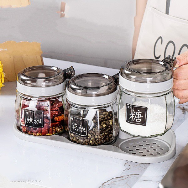 - Bộ sản phẩm bao gồm: 3 hũ gia vị + đế