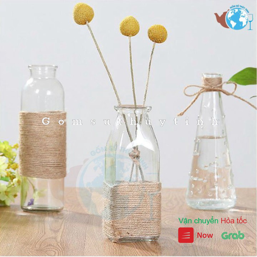 SET 3 lọ hoa thủy tinh VUÔNG - TRÒN VÀ GIỌT SƯƠNG - MIX 3 MẪU SIÊU XINH tặng kèm 3 dây dừa trang trí