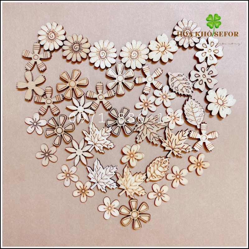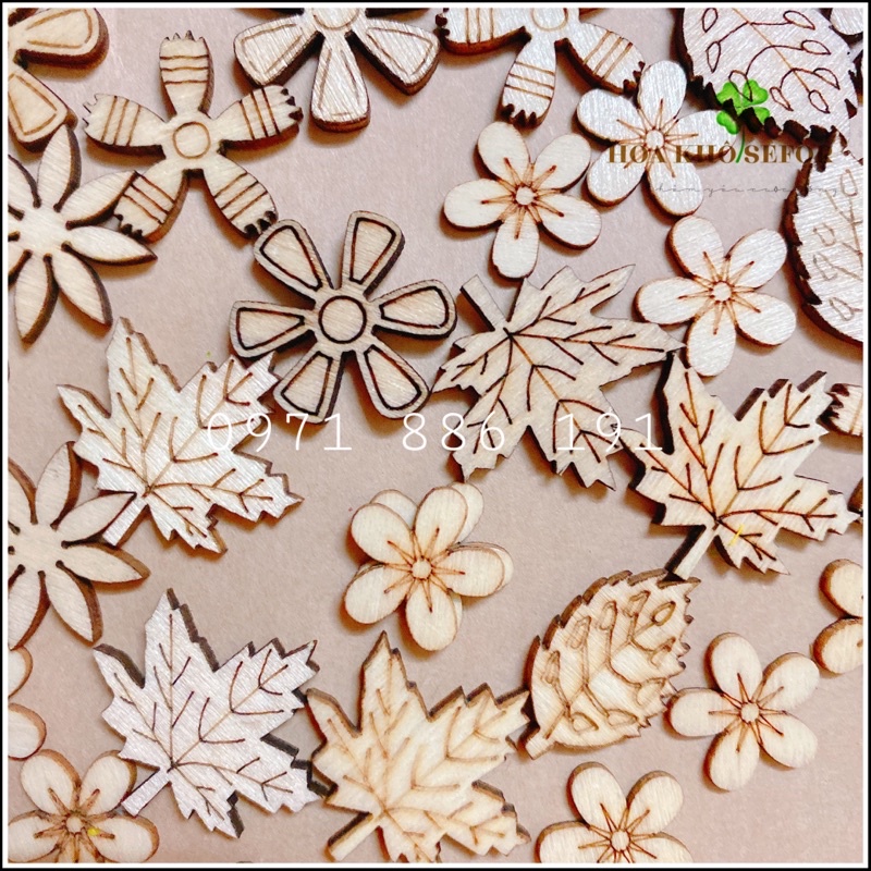Giới thiệu Set 3 miếng gỗ hình hoa lá trang trí ❤️ hoa gỗ trang trí