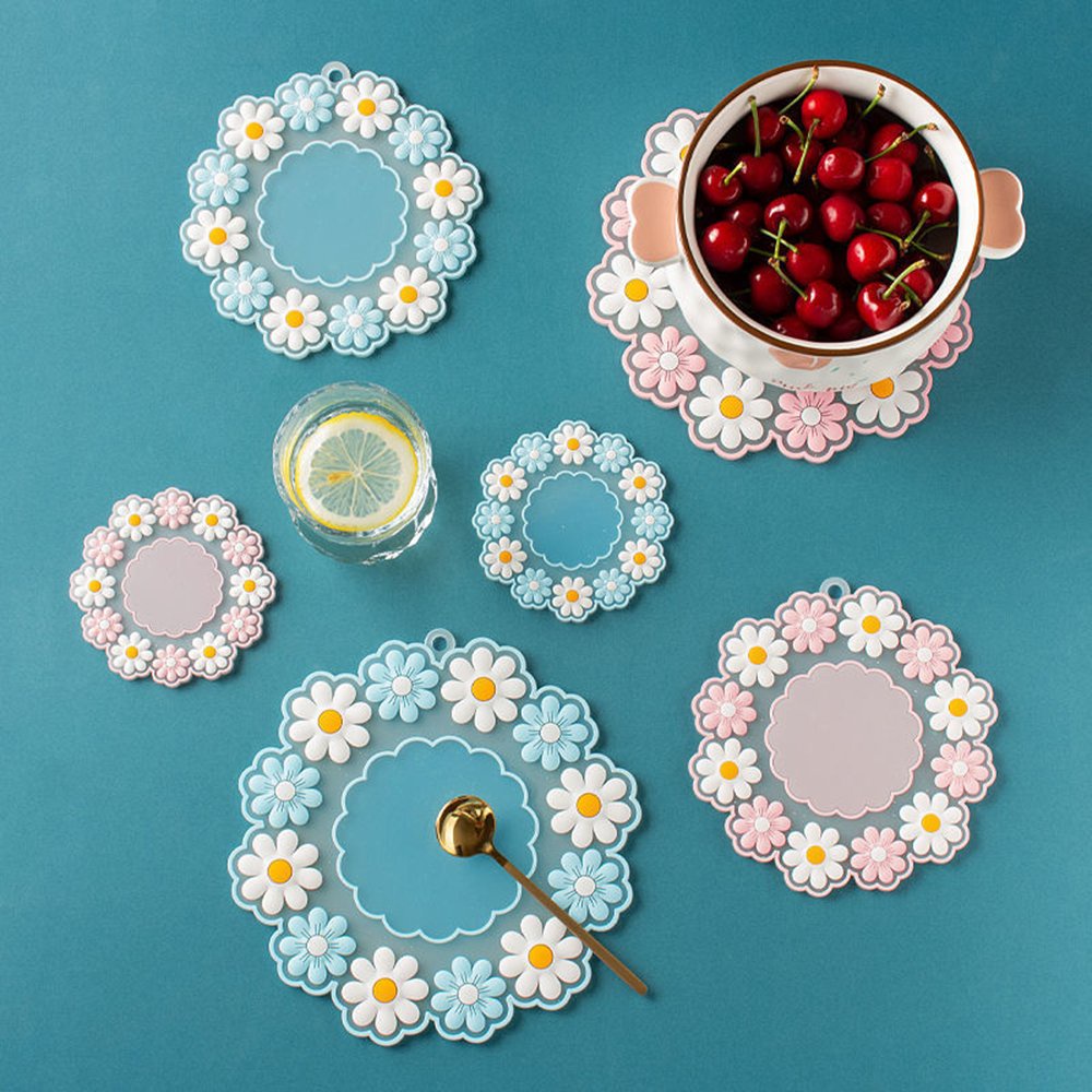 Nhà cửa & Đời sống > Bộ đồ bàn ăn > Khay, tấm lót bàn ăn || Sét 3 miếng lót cách nhiệt bát đĩa cốc chén xoong nồi silicone đa năng hình hoa cúc trang trí xinh xắnCòn hàng