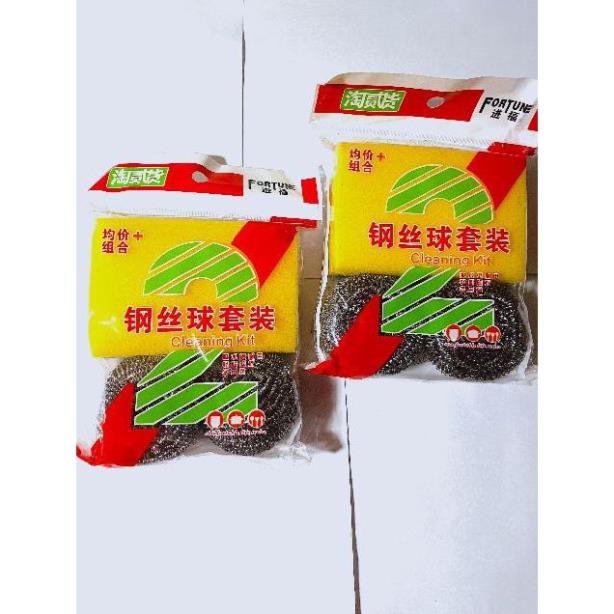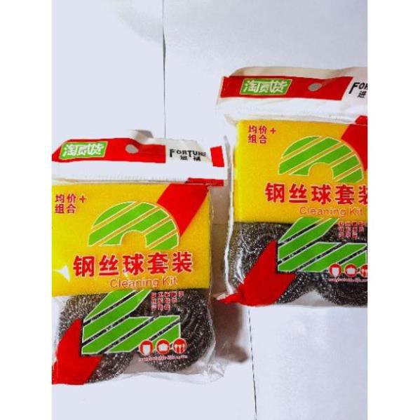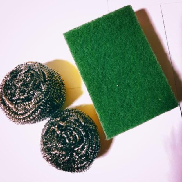 Bộ gồm 3 mớ cọ rửa: 2 mớ cọ xoong nồi bằng sợi inox không rỉ, không mủn sợi khi dùng. 1 mớ rửa bát mềm tạo bọt.Hàng chất lượng đảm bảo dùng khác hẳn các hàng trên thị trường.